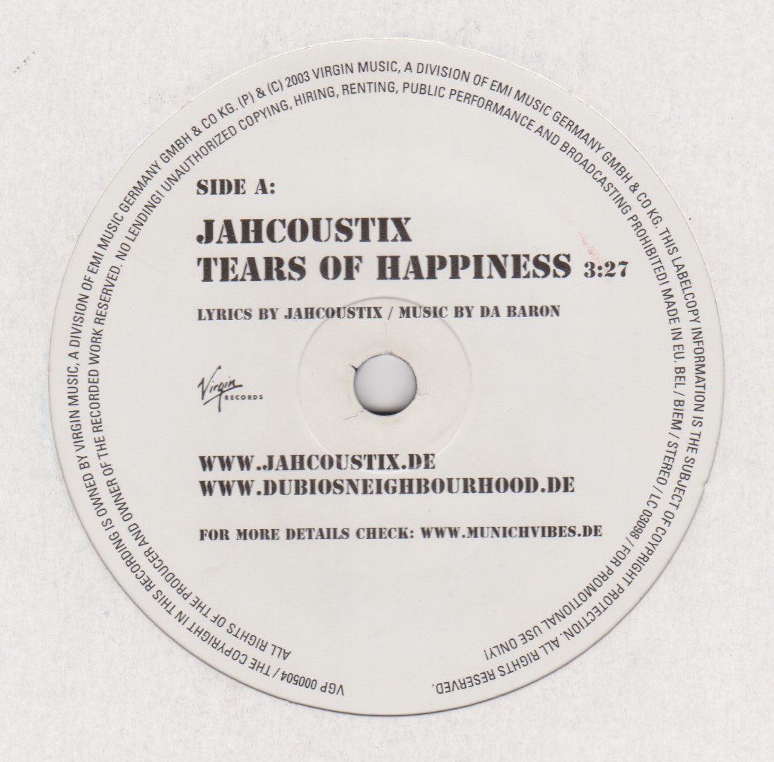Tears Of Happiness / Live Up | Jahcoustix, Oneness Band, Conscious Fiyah | Virgin Music Germany | 7 | Used | In stock | EUR 5.45 | BuyReggae |